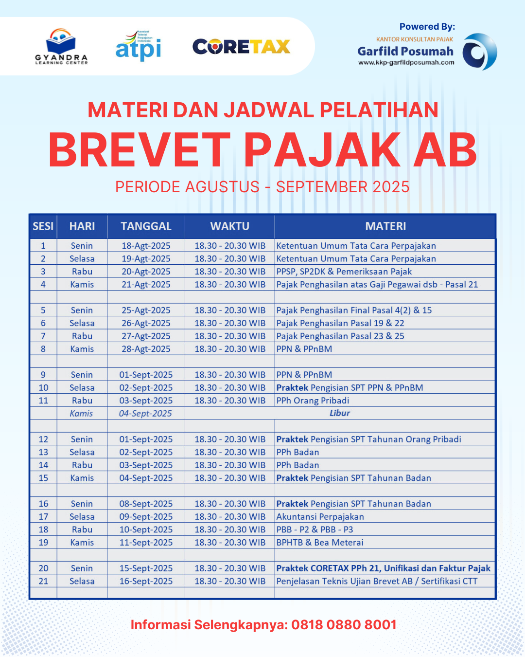 Brevet Pajak AB & Sertifikasi Gelar CTT (Certified Tax Technician)